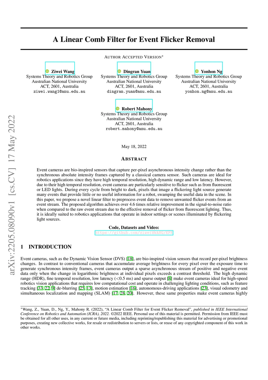 A Linear Comb Filter for Event Flicker Removal