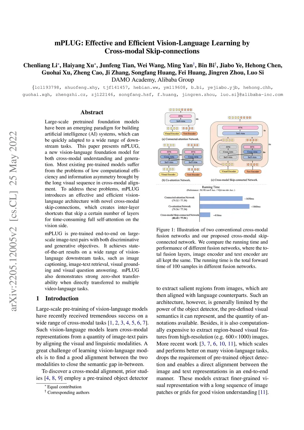 mPLUG: Effective and Efficient Vision-Language Learning by Cross-modal