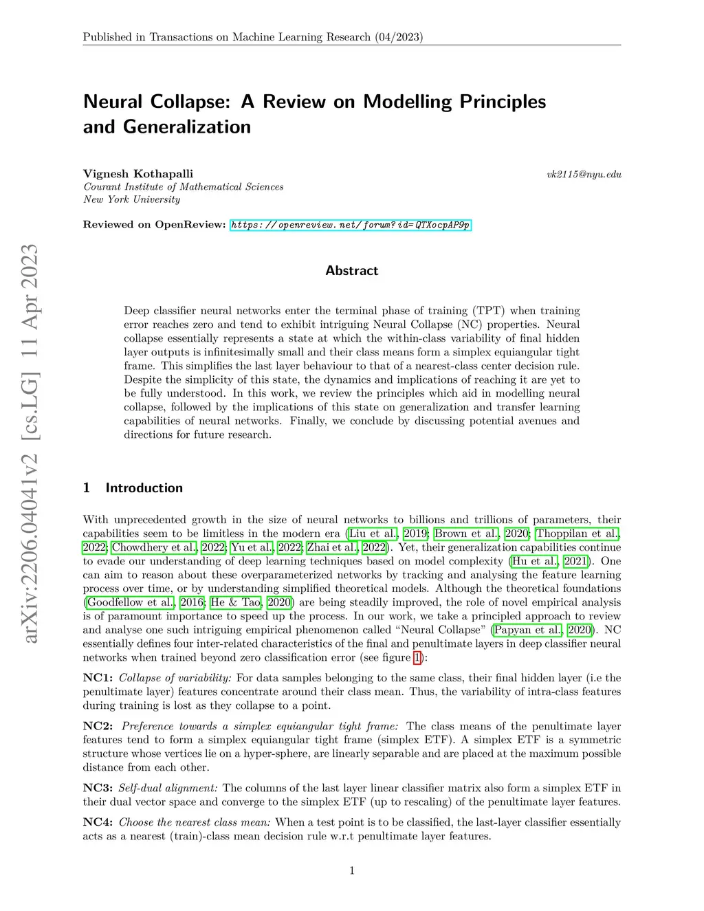 Neural Collapse: A Review on Modelling Principles and Generalization