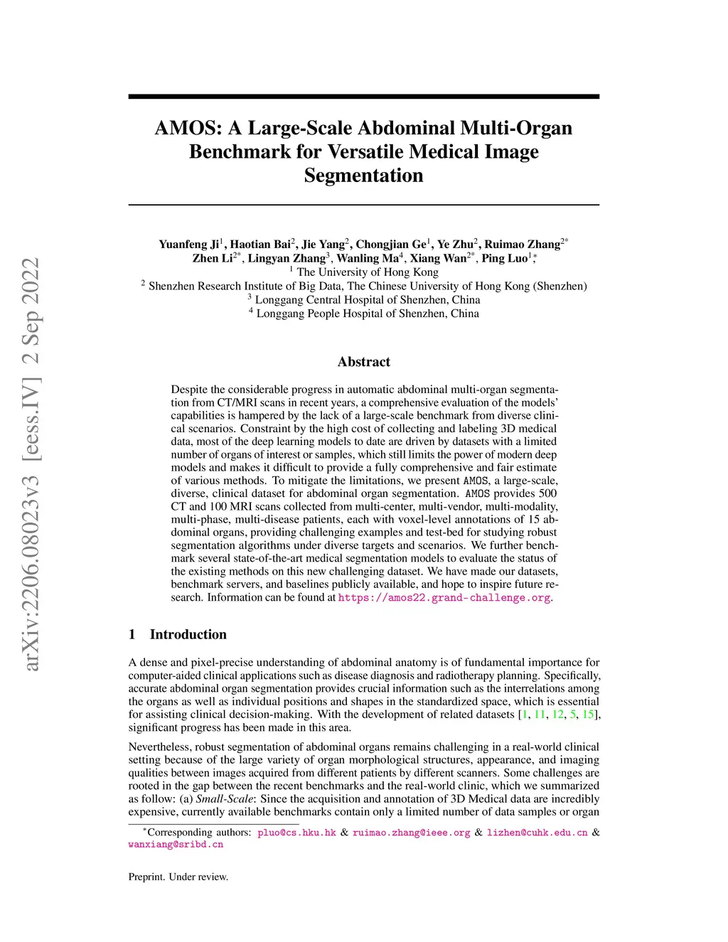AMOS: A Large-Scale Abdominal Multi-Organ Benchmark for Versatile