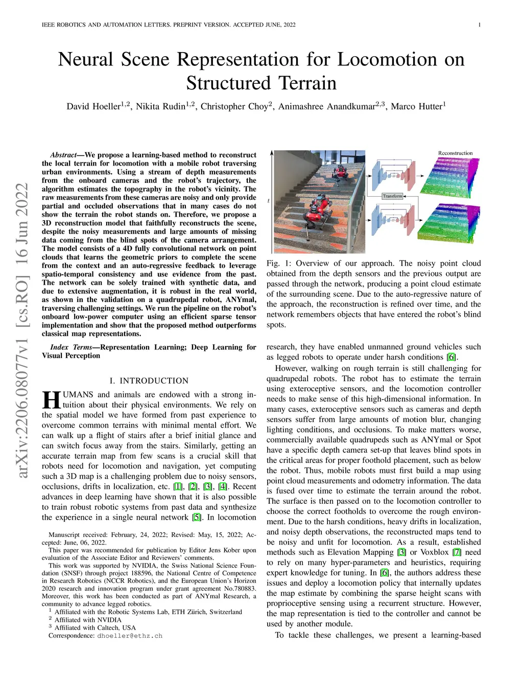 Neural Scene Representation for Locomotion on Structured Terrain