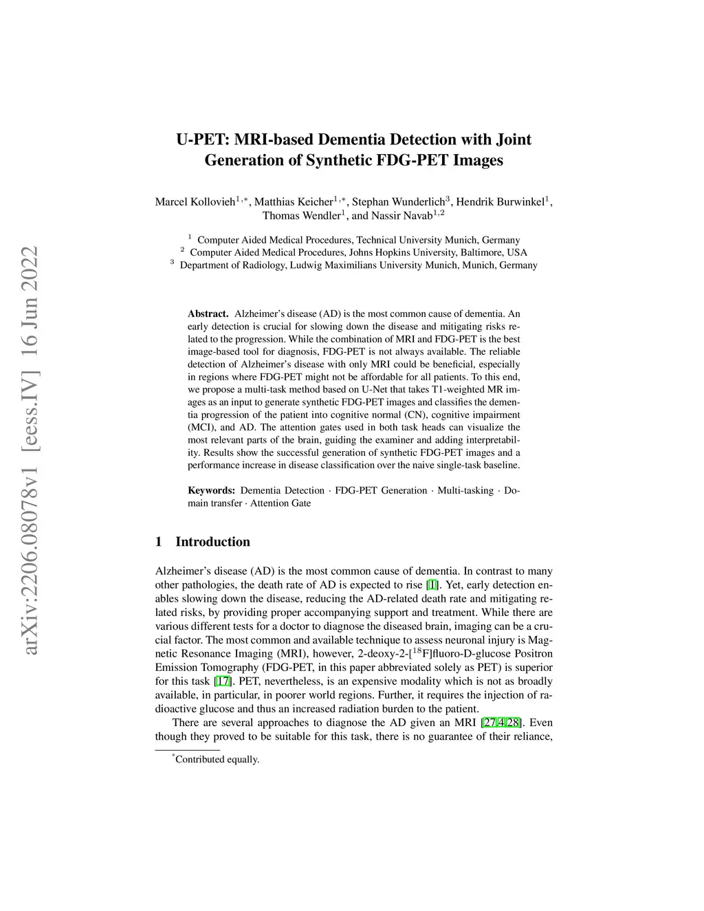 U-PET: MRI-based Dementia Detection with Joint Generation of Synthetic