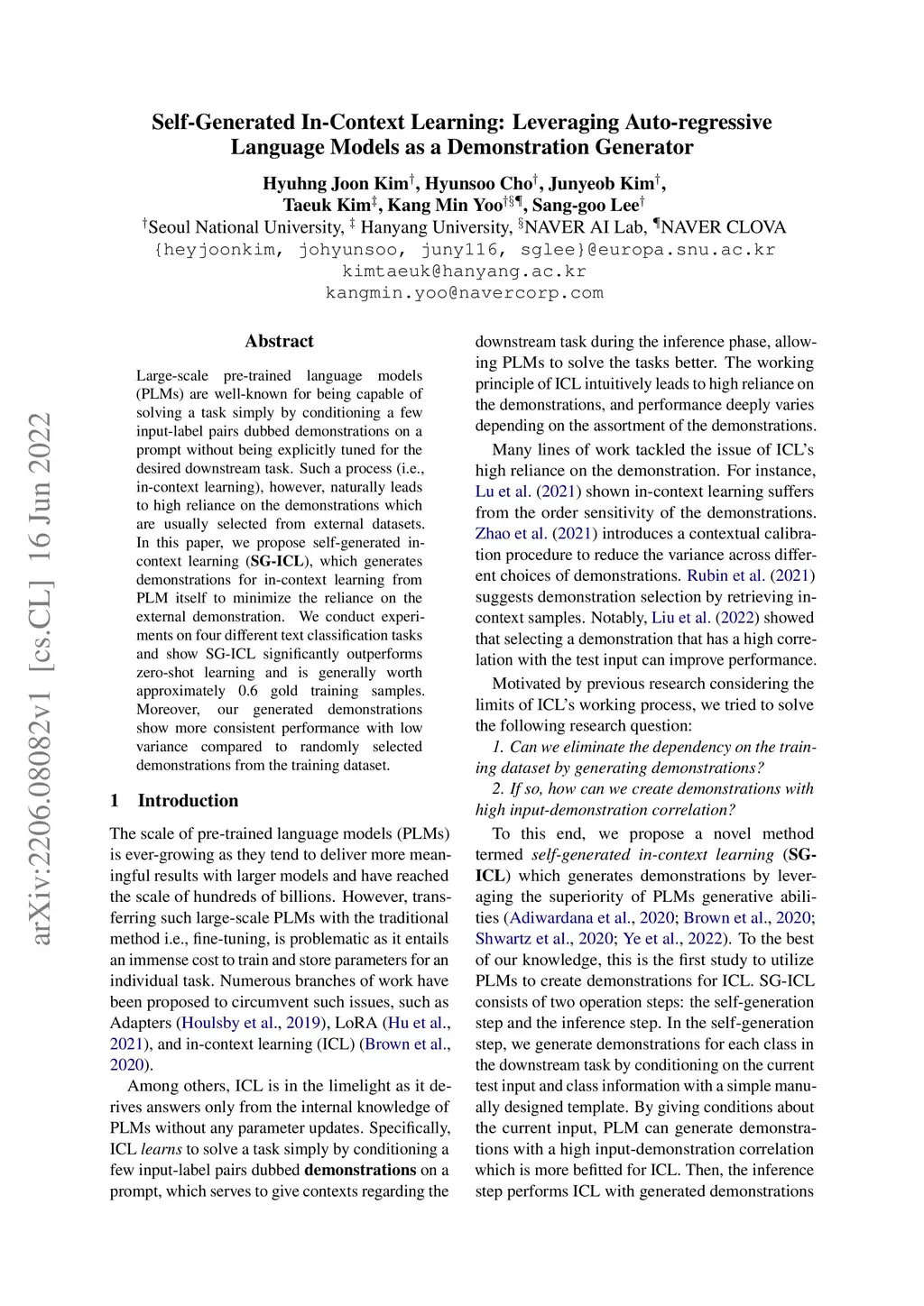 Self-Generated In-Context Learning: Leveraging Auto-regressive Language