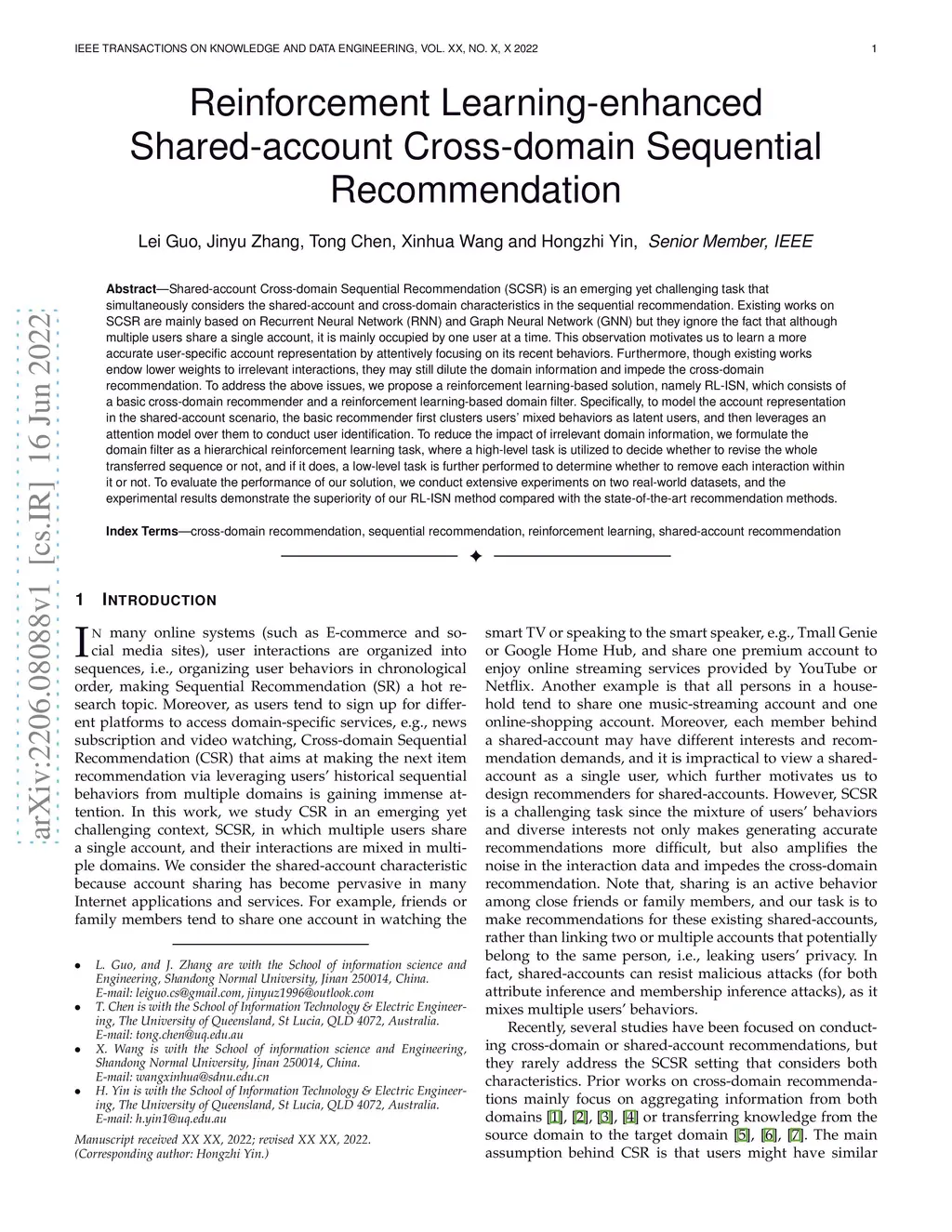 Reinforcement Learning-enhanced Shared-account Cross-domain Sequential