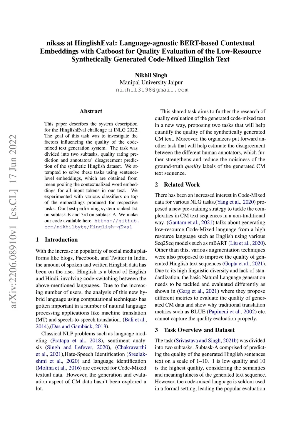 niksss at HinglishEval: Language-agnostic BERT-based Contextual