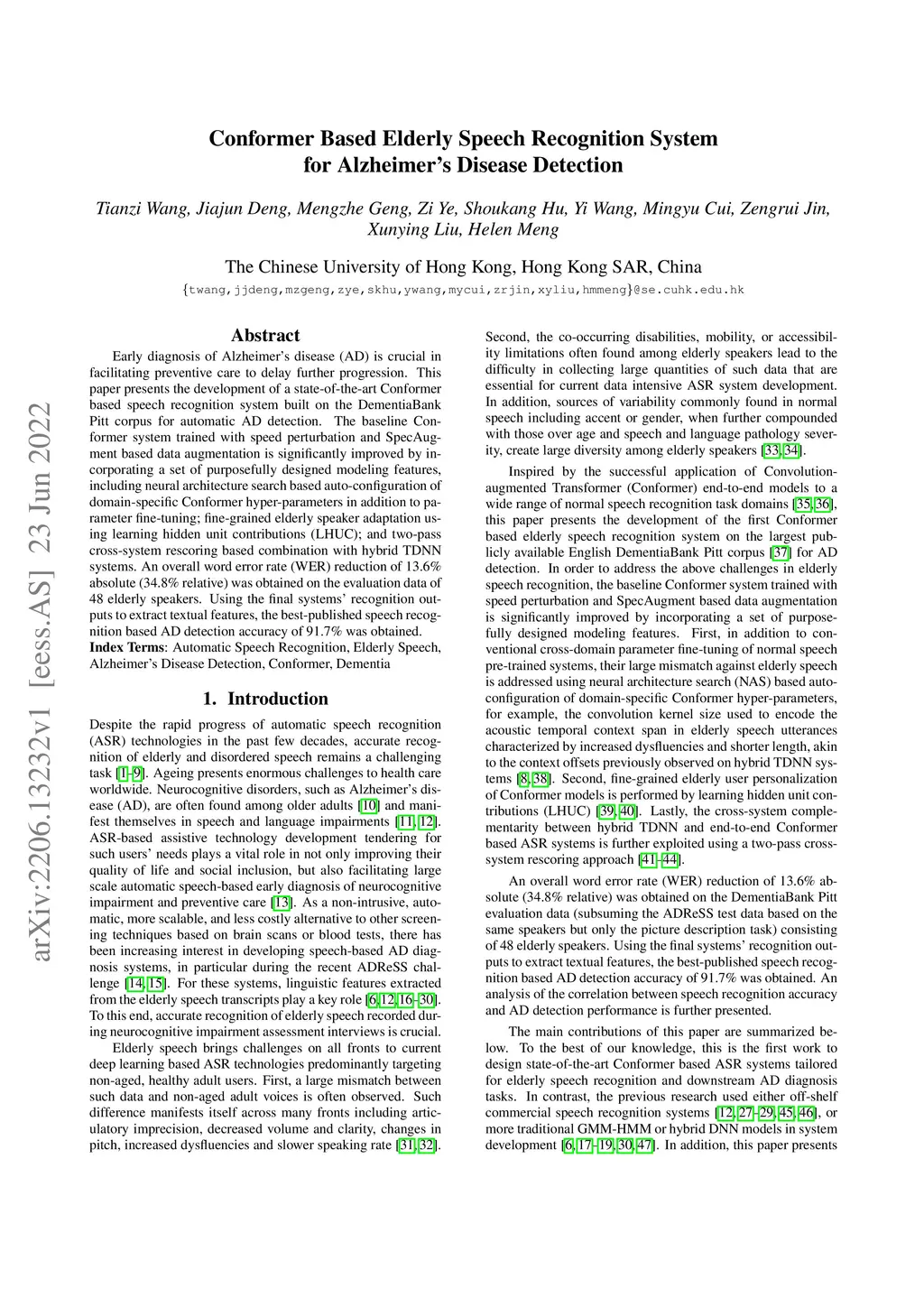 Conformer Based Elderly Speech Recognition System for Alzheimer's