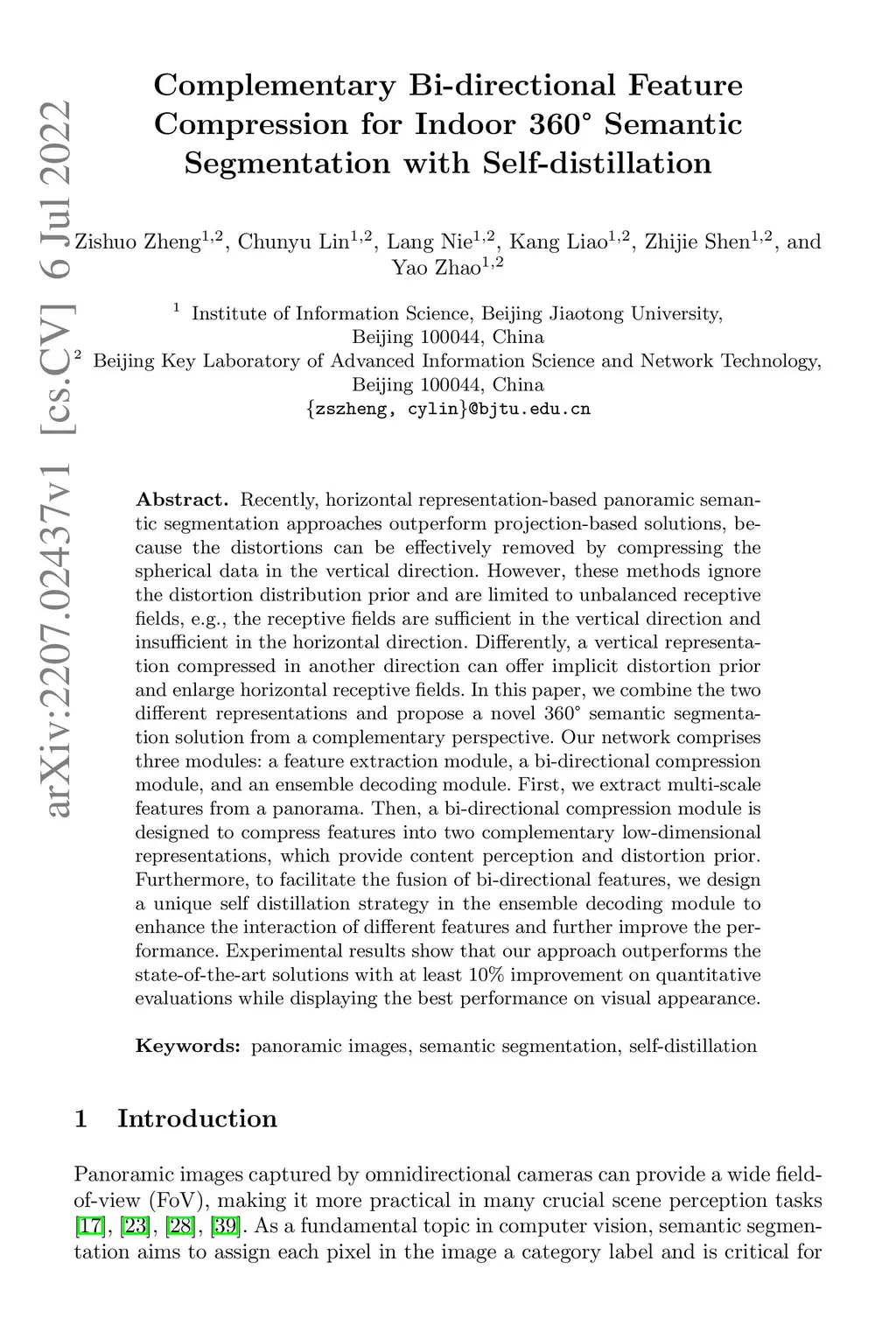 Complementary Bi-directional Feature Compression for Indoor 360°