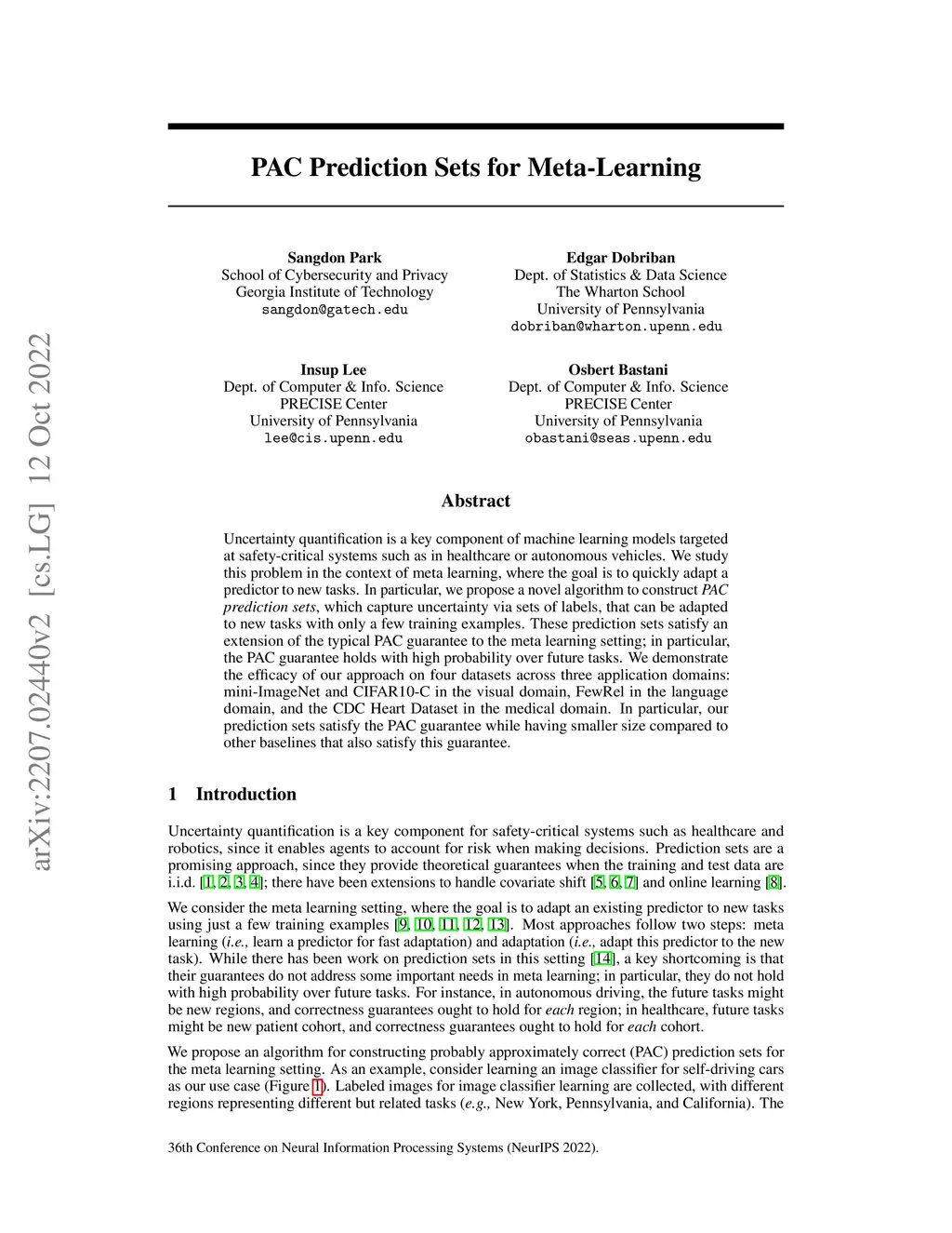 PAC Prediction Sets for Meta-Learning