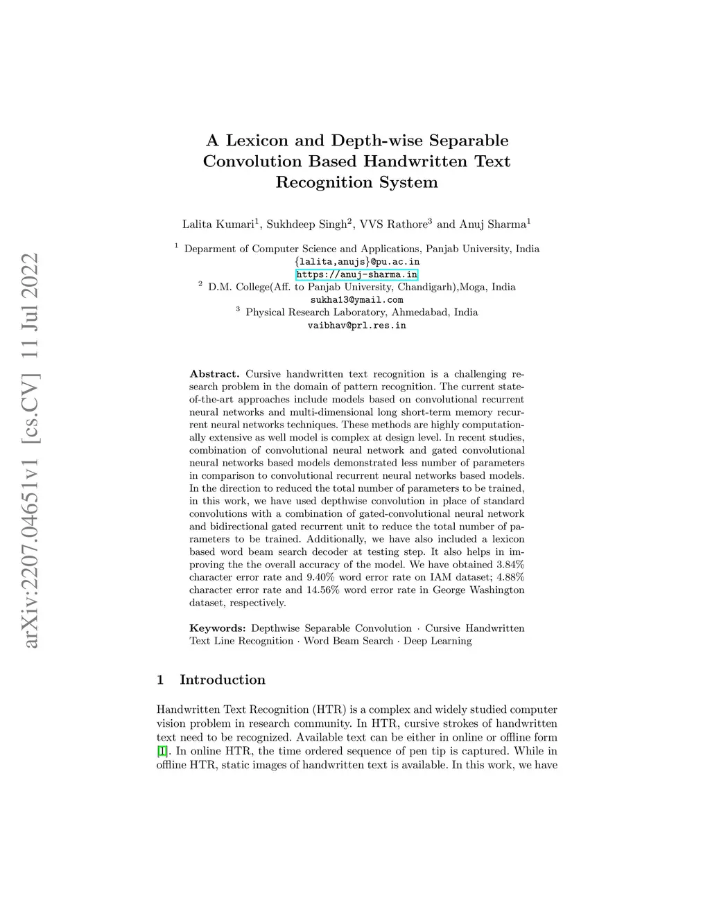 A Lexicon and Depth-wise Separable Convolution Based Handwritten Text