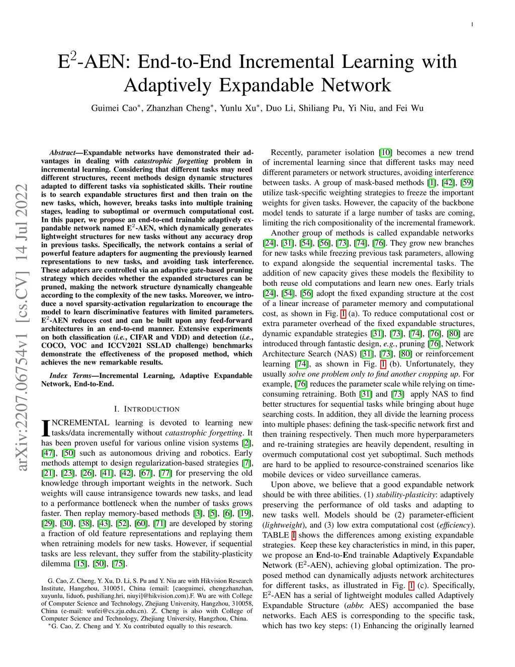 E2-AEN: End-to-End Incremental Learning with Adaptively Expandable