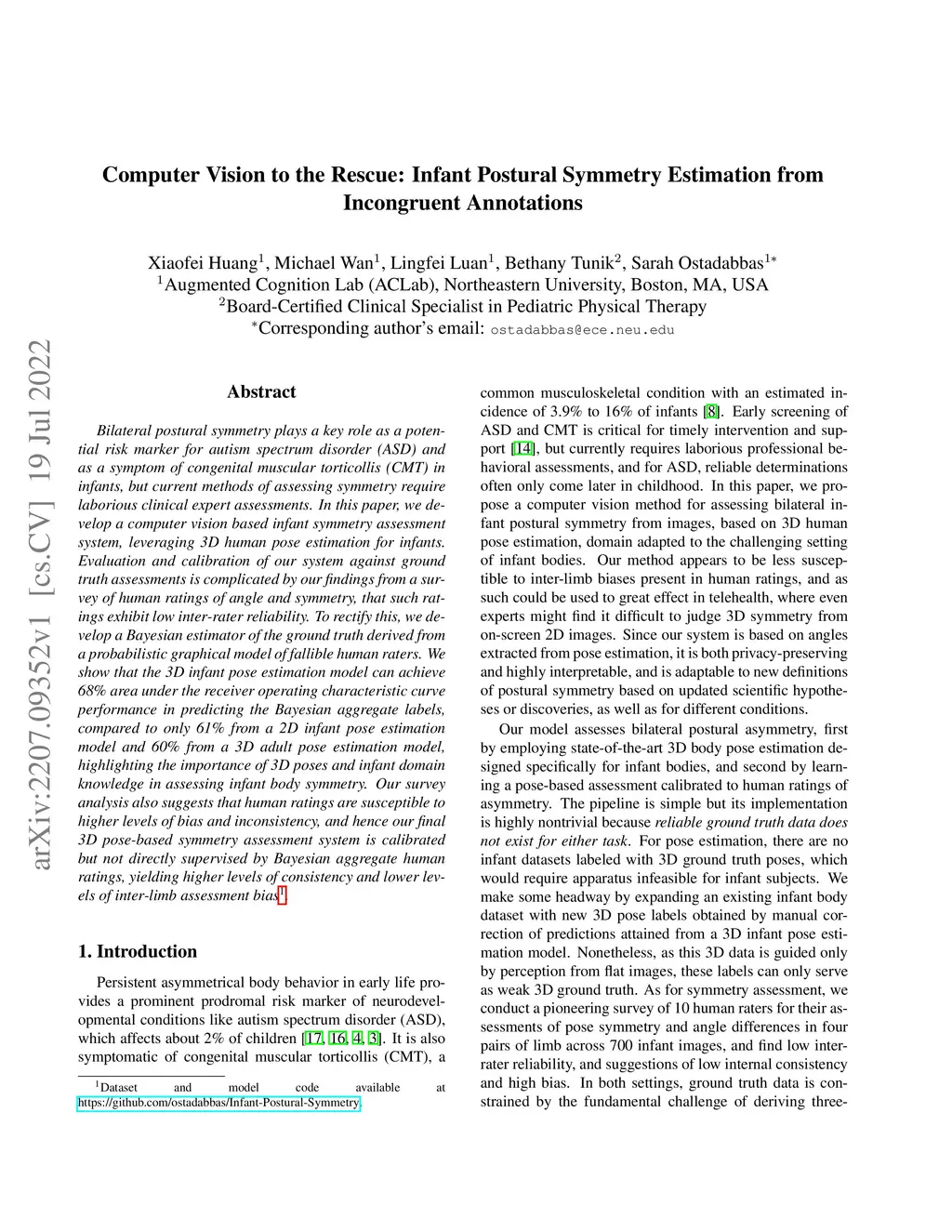 Computer Vision to the Rescue: Infant Postural Symmetry Estimation from