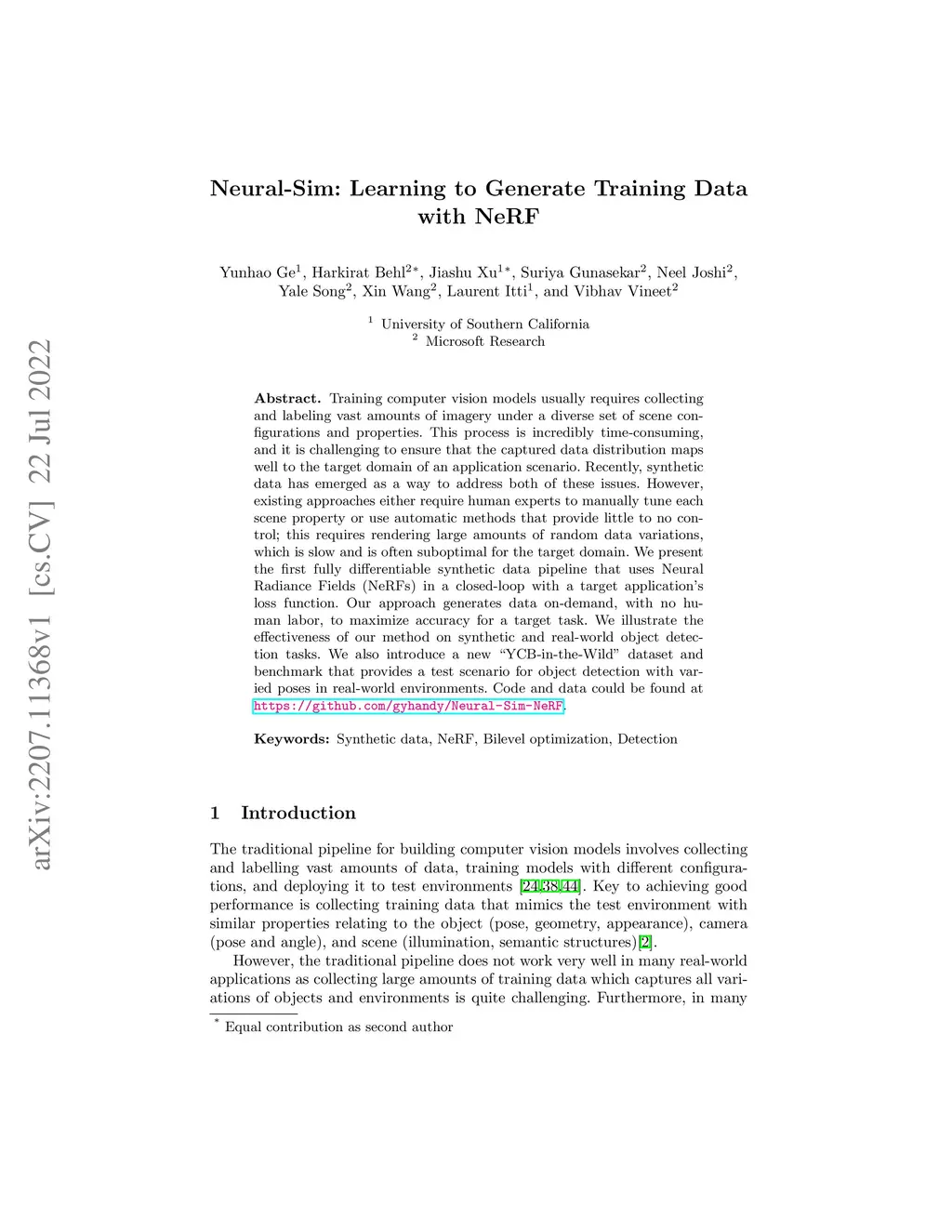 Neural-Sim: Learning to Generate Training Data with NeRF