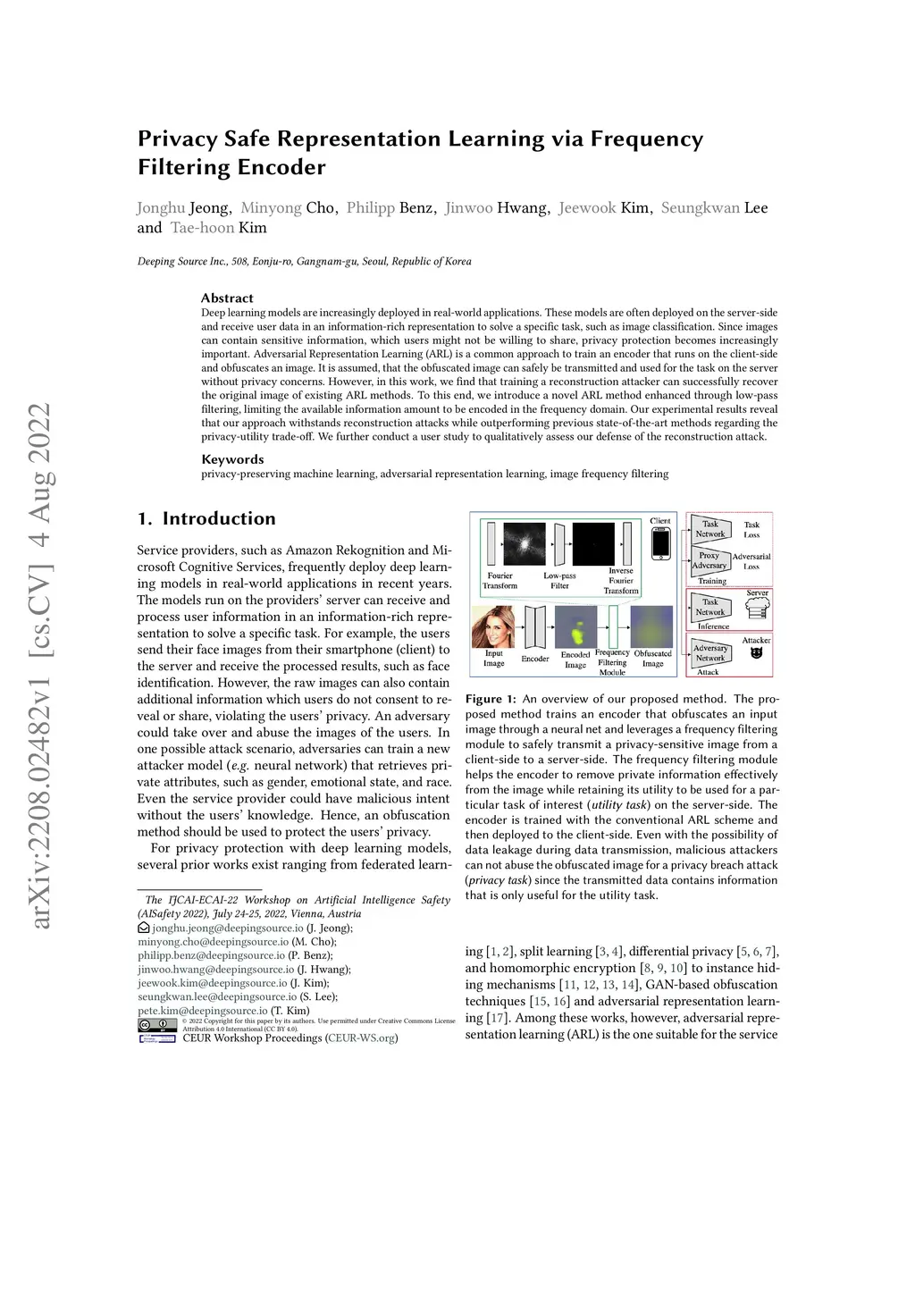 Privacy Safe Representation Learning via Frequency Filtering Encoder