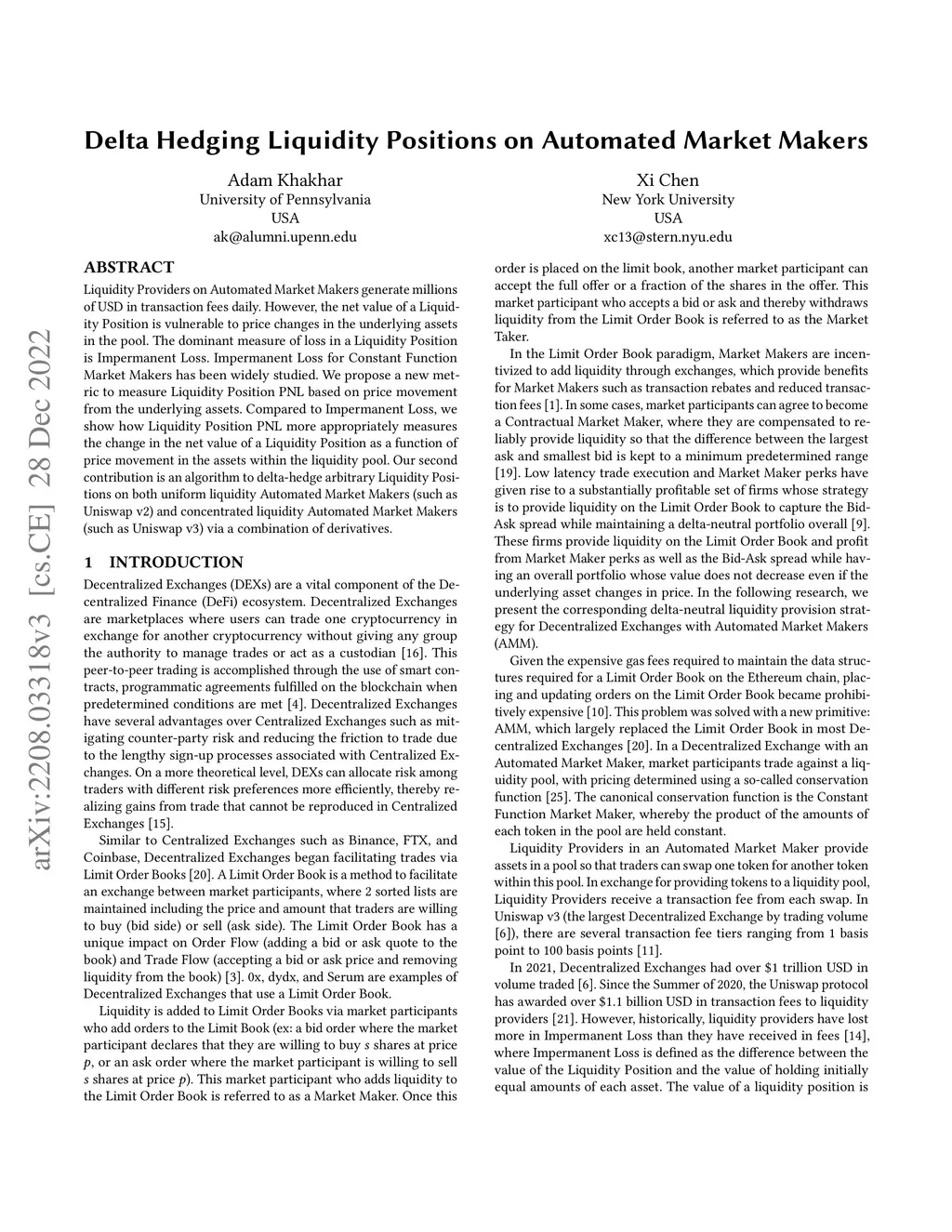 Liquidity Providers on Automated Market Makers generate millions of USD in transaction fees daily. However, the net value of a Liquidity Position is vulnerable to price changes in the underlying assets in the pool. The dominant measure of loss in a Liquidity Position is Impermanent Loss. Impermanent Loss for Constant Function Market Makers has been widely studied. We propose a new metric to measure Liquidity Position PNL based on price movement from the underlying assets. We show how this new metric more appropriately measures the change in the net value of a Liquidity Position as a function of price movement in the underlying assets. Our second contribution is an algorithm to delta hedge arbitrary Liquidity Positions on both uniform liquidity Automated Market Makers (such as Uniswap v2) and concentrated liquidity Automated Market Makers (such as Uniswap v3) via a combination of derivatives.