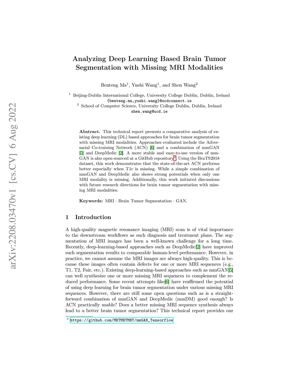 This technical report presents a comparative analysis of existing deep learning (DL) based approaches for brain tumor segmentation with missing MRI modalities. Approaches evaluated include the Adversarial Co-training Network (ACN) and a combination of mmGAN and DeepMedic. A more stable and easy-to-use version of mmGAN is also open-sourced at a GitHub repository. Using the BraTS2018 dataset, this work demonstrates that the state-of-the-art ACN performs better especially when T1c is missing. While a simple combination of mmGAN and DeepMedic also shows strong potentials when only one MRI modality is missing. Additionally, this work initiated discussions with future research directions for brain tumor segmentation with missing MRI modalities.