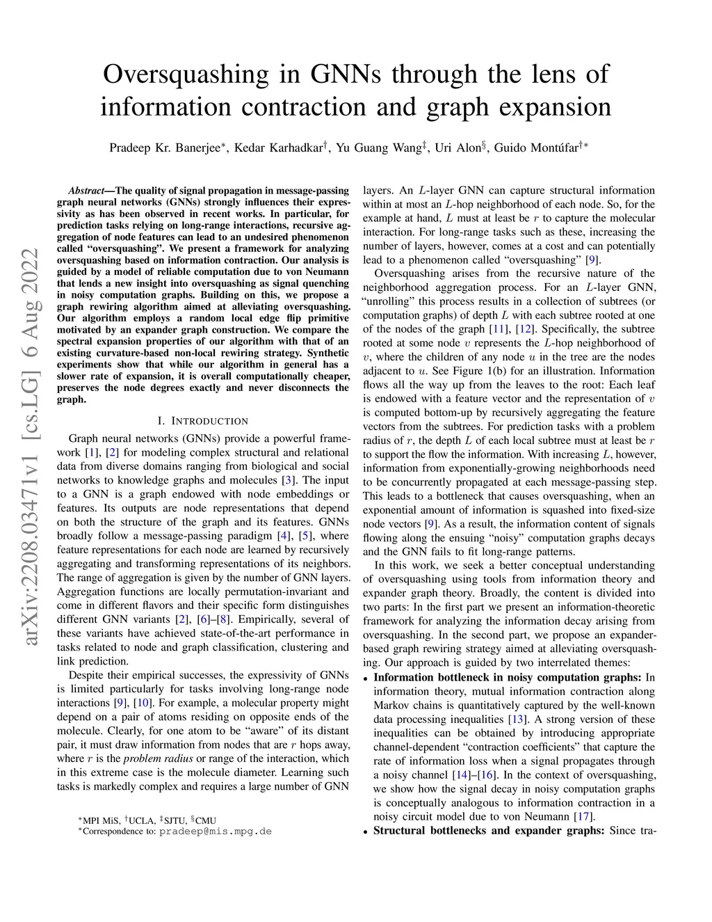 The quality of signal propagation in message-passing graph neural networks (GNNs) strongly influences their expressivity as has been observed in recent works. In particular, for prediction tasks relying on long-range interactions, recursive aggregation of node features can lead to an undesired phenomenon called "oversquashing". We present a framework for analyzing oversquashing based on information contraction. Our analysis is guided by a model of reliable computation due to von Neumann that lends a new insight into oversquashing as signal quenching in noisy computation graphs. Building on this, we propose a graph rewiring algorithm aimed at alleviating oversquashing. Our algorithm employs a random local edge flip primitive motivated by an expander graph construction. We compare the spectral expansion properties of our algorithm with that of an existing curvature-based non-local rewiring strategy. Synthetic experiments show that while our algorithm in general has a slower rate of expansion, it is overall computationally cheaper, preserves the node degrees exactly and never disconnects the graph.
