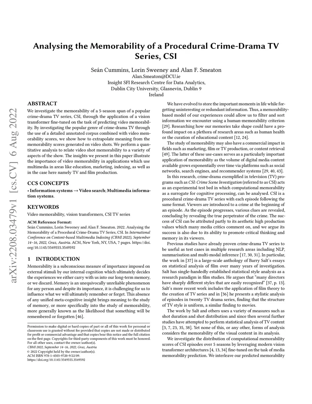 Analysing the Memorability of a Procedural Crime-Drama TV Series, CSI