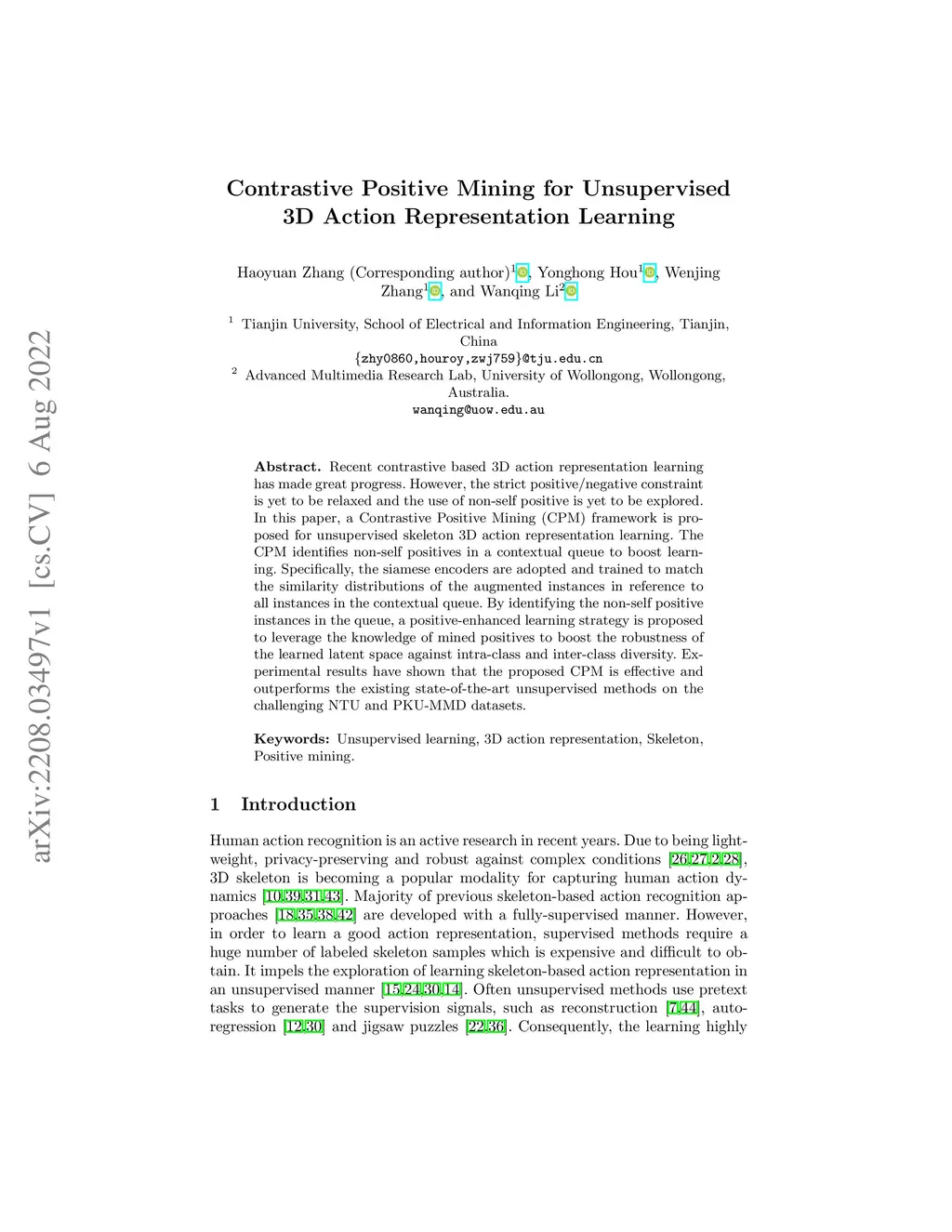 Contrastive Positive Mining for Unsupervised 3D Action Representation