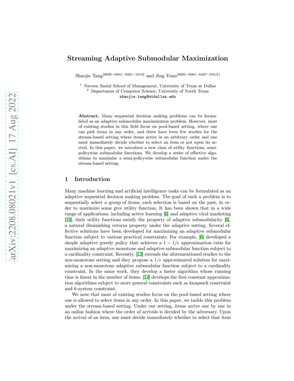 Many sequential decision making problems can be formulated as an adaptive submodular maximization problem. However, most of existing studies in this field focus on pool-based setting, where one can pick items in any order, and there have been few studies for the stream-based setting where items arrive in an arbitrary order and one must immediately decide whether to select an item or not upon its arrival. In this paper, we introduce a new class of utility functions, semi-policywise submodular functions. We develop a series of effective algorithms to maximize a semi-policywise submodular function under the stream-based setting.