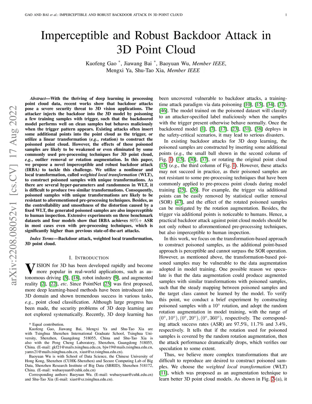 Imperceptible and Robust Backdoor Attack in 3D Point Cloud