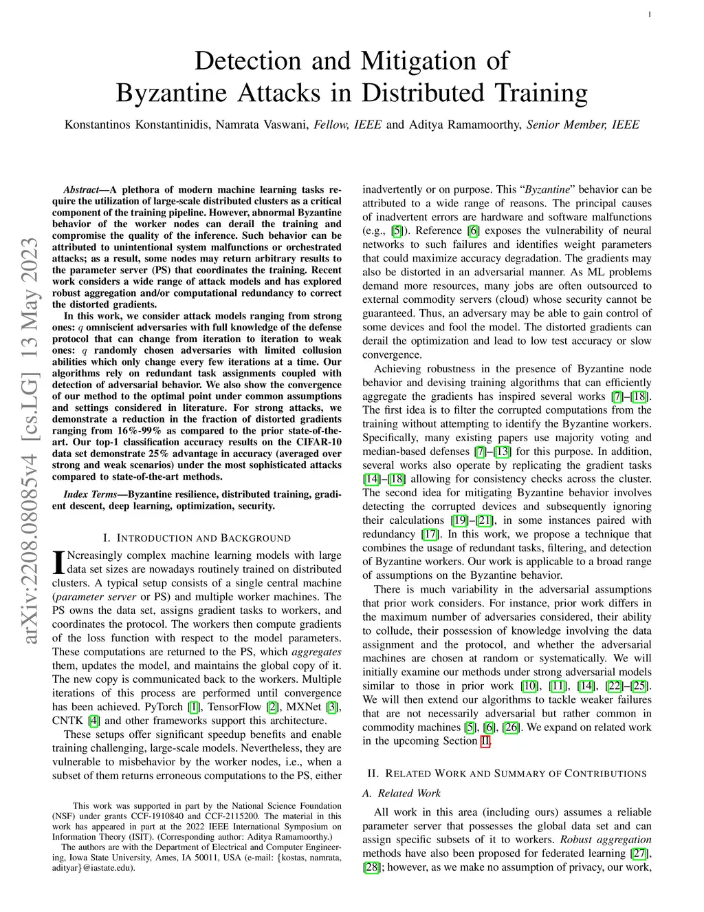 Detection and Mitigation of Byzantine Attacks in Distributed Training