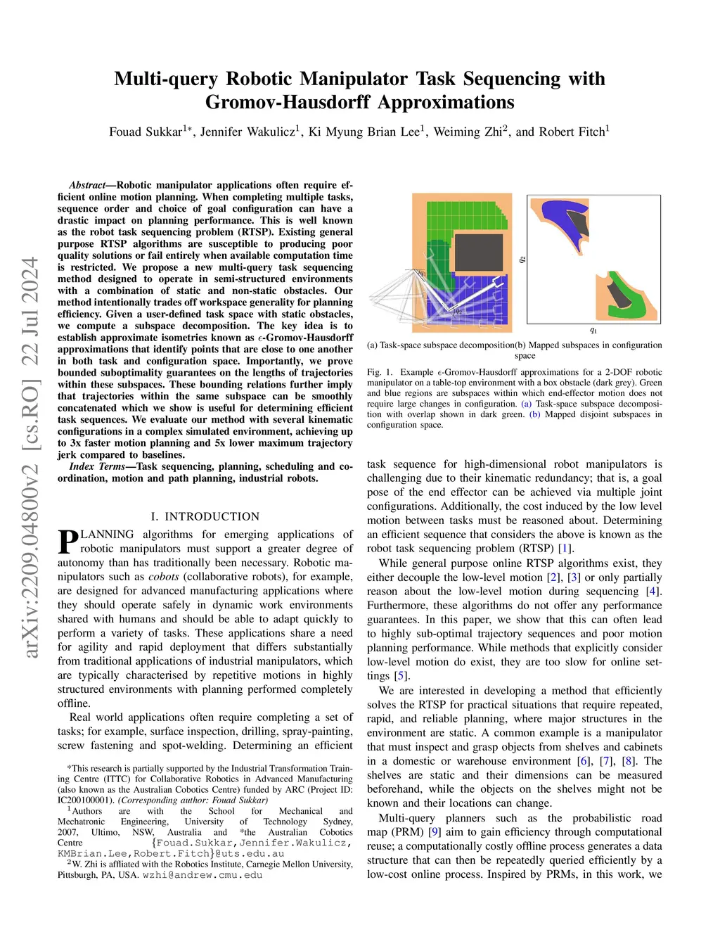 Multi-query Robotic Manipulator Task Sequencing with Gromov-Hausdorff Approximations