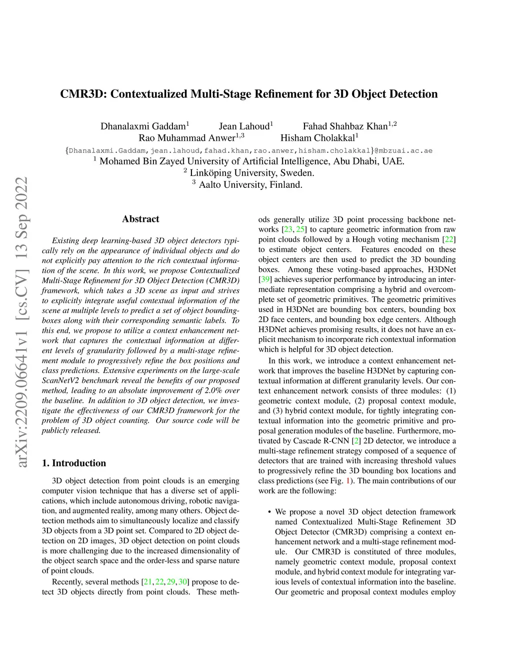 CMR3D: Contextualized Multi-Stage Refinement for 3D Object Detection