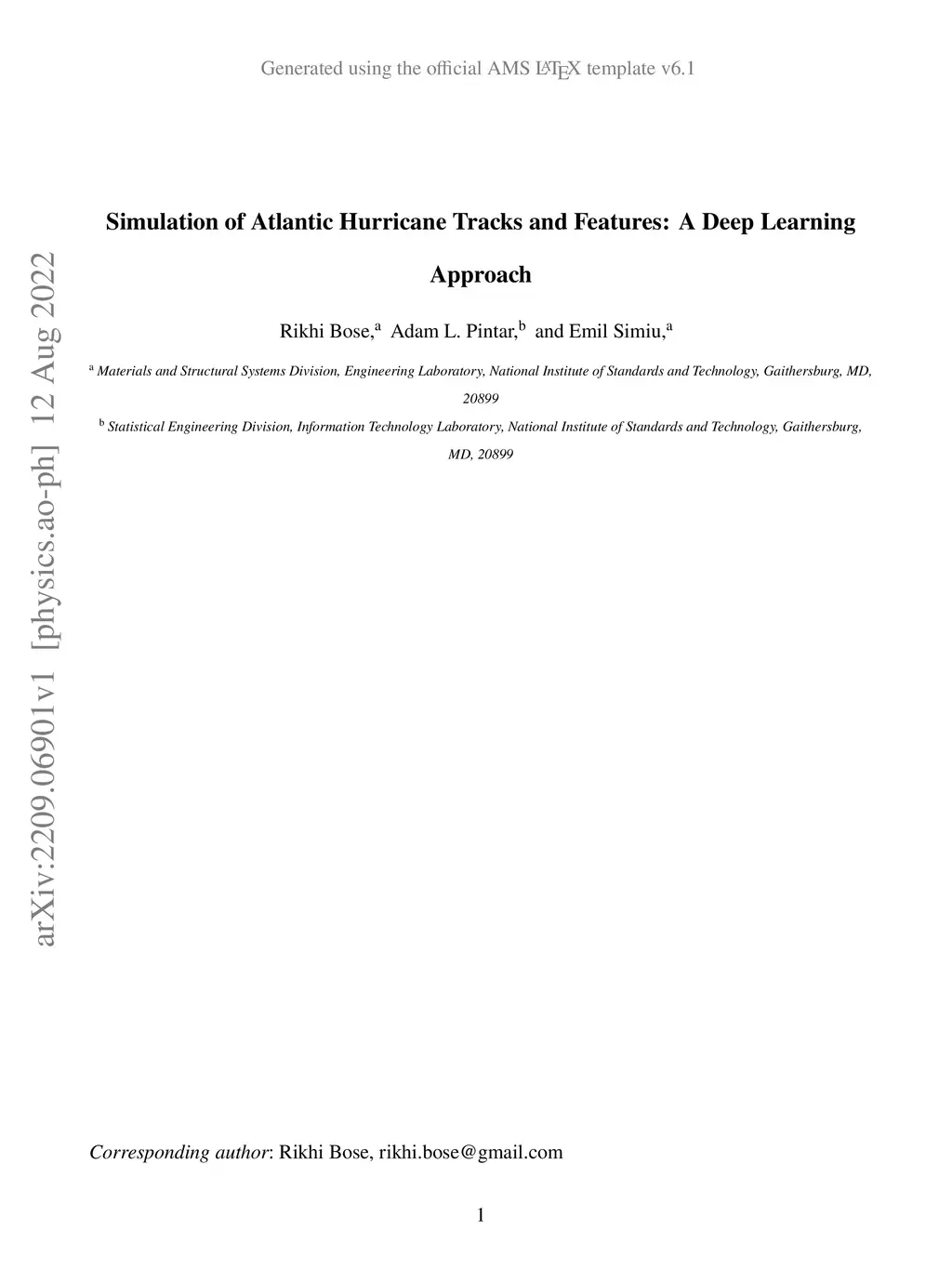 Simulation of Atlantic Hurricane Tracks and Features: A Deep Learning