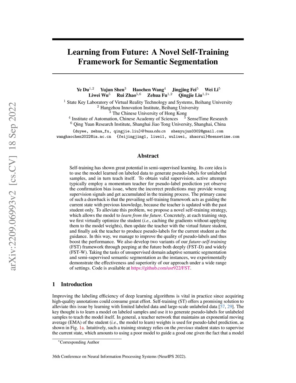 Learning from Future: A Novel Self-Training Framework for Semantic