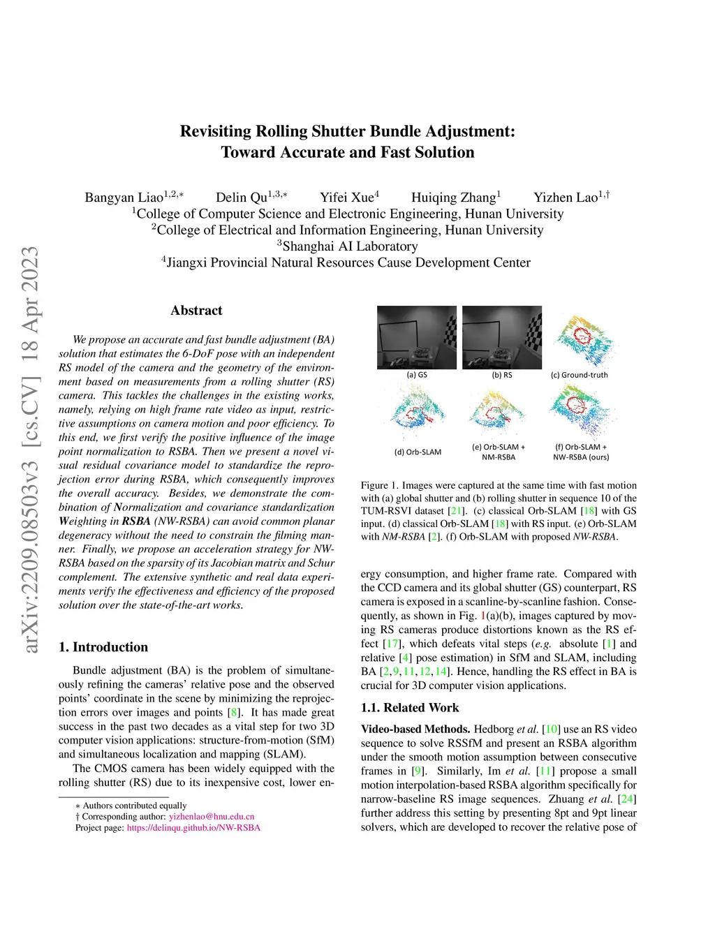 We propose a robust and fast bundle adjustment solution that estimates the 6-DoF pose of the camera and the geometry of the environment based on measurements from a rolling shutter (RS) camera. This tackles the challenges in the existing works, namely relying on additional sensors, high frame rate video as input, restrictive assumptions on camera motion, readout direction, and poor efficiency. To this end, we first investigate the influence of normalization to the image point on RSBA performance and show its better approximation in modelling the real 6-DoF camera motion. Then we present a novel analytical model for the visual residual covariance, which can be used to standardize the reprojection error during the optimization, consequently improving the overall accuracy. More importantly, the combination of normalization and covariance standardization weighting in RSBA (NW-RSBA) can avoid common planar degeneracy without needing to constrain the filming manner. Besides, we propose an acceleration strategy for NW-RSBA based on the sparsity of its Jacobian matrix and Schur complement. The extensive synthetic and real data experiments verify the effectiveness and efficiency of the proposed solution over the state-of-the-art works. We also demonstrate the proposed method can be easily implemented and plug-in famous GSSfM and GSSLAM systems as completed RSSfM and RSSLAM solutions.