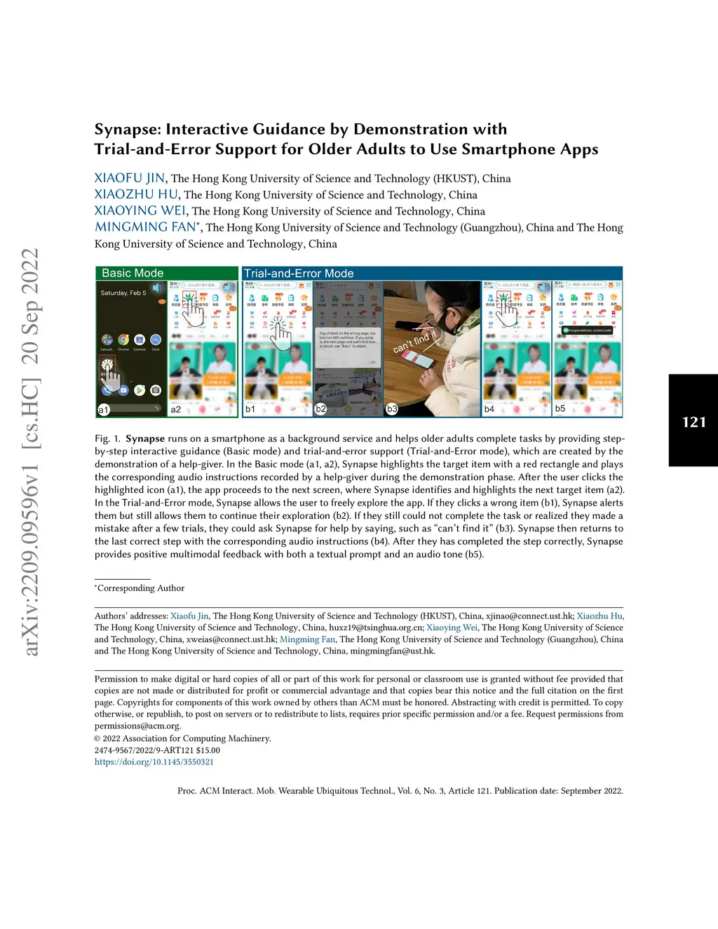 As smartphones are widely adopted, mobile applications (apps) are emerging to provide critical services such as food delivery and telemedicine. While bring convenience to everyday life, this trend may create barriers for older adults who tend to be less tech-savvy than young people. In-person or screen sharing support is helpful but limited by the help-givers' availability. Video tutorials can be useful but require users to switch contexts between watching the tutorial and performing the corresponding actions in the app, which is cumbersome to do on a mobile phone. Although interactive tutorials have been shown to be promising, none was designed for older adults. Furthermore, the trial-and-error approach has been shown to be beneficial for older adults, but they often lack support to use the approach. Inspired by both interactive tutorials and trial-and-error approach, we designed an app-independent mobile service, \textit{Synapse}, for help-givers to create a multimodal interactive tutorial on a smartphone and for help-receivers (e.g., older adults) to receive interactive guidance with trial-and-error support when they work on the same task. We conducted a user study with 18 older adults who were 60 and over. Our quantitative and qualitative results show that Synapse provided better support than the traditional video approach and enabled participants to feel more confident and motivated. Lastly, we present further design considerations to better support older adults with trial-and-error on smartphones.