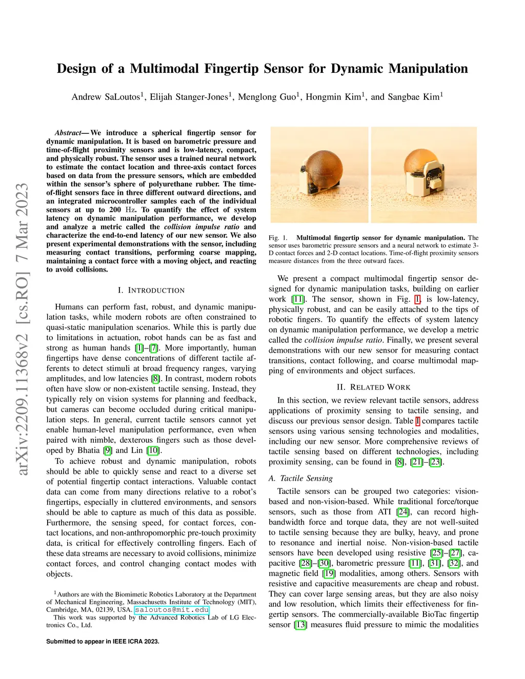 Design of a Multimodal Fingertip Sensor for Dynamic Manipulation