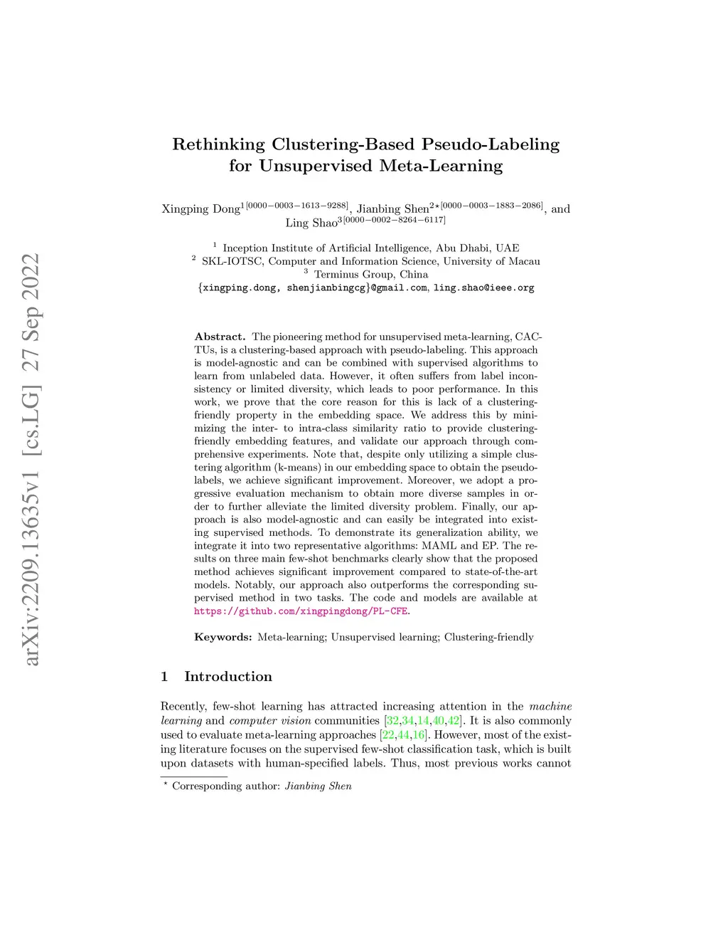 The pioneering method for unsupervised meta-learning, CACTUs, is a clustering-based approach with pseudo-labeling. This approach is model-agnostic and can be combined with supervised algorithms to learn from unlabeled data. However, it often suffers from label inconsistency or limited diversity, which leads to poor performance. In this work, we prove that the core reason for this is lack of a clustering-friendly property in the embedding space. We address this by minimizing the inter- to intra-class similarity ratio to provide clustering-friendly embedding features, and validate our approach through comprehensive experiments. Note that, despite only utilizing a simple clustering algorithm (k-means) in our embedding space to obtain the pseudo-labels, we achieve significant improvement. Moreover, we adopt a progressive evaluation mechanism to obtain more diverse samples in order to further alleviate the limited diversity problem. Finally, our approach is also model-agnostic and can easily be integrated into existing supervised methods. To demonstrate its generalization ability, we integrate it into two representative algorithms: MAML and EP. The results on three main few-shot benchmarks clearly show that the proposed method achieves significant improvement compared to state-of-the-art models. Notably, our approach also outperforms the corresponding supervised method in two tasks.
