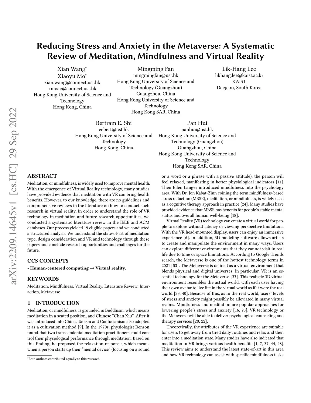 Reducing Stress and Anxiety in the Metaverse: A Systematic Review of
