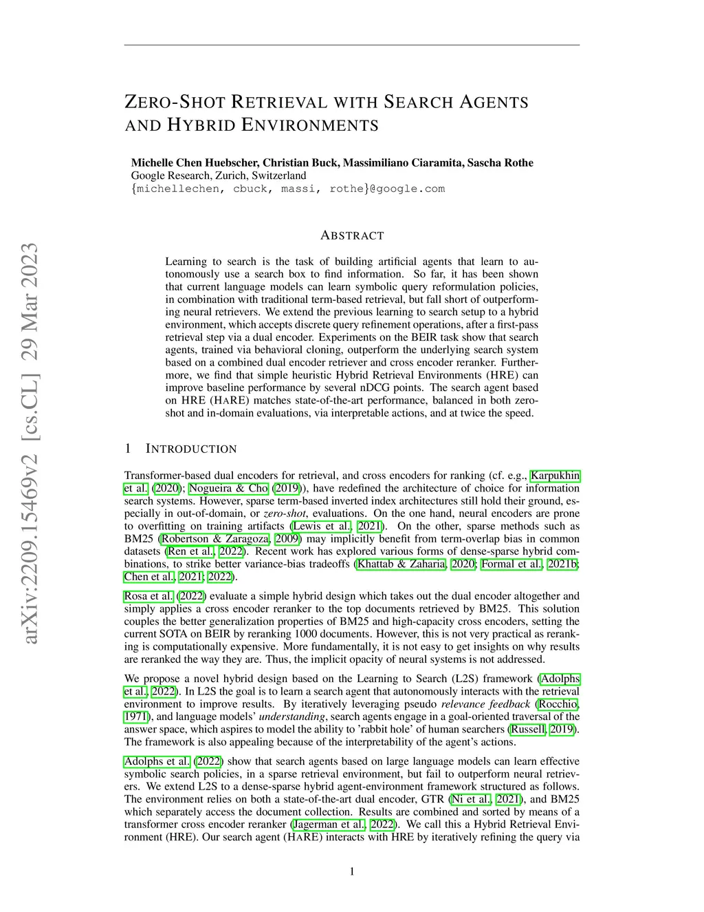 Zero-Shot Retrieval with Search Agents and Hybrid Environments