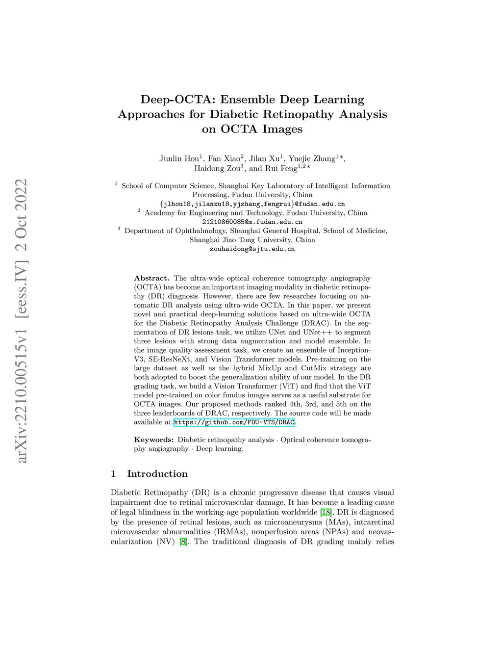 Deep-OCTA: Ensemble Deep Learning Approaches for Diabetic Retinopathy