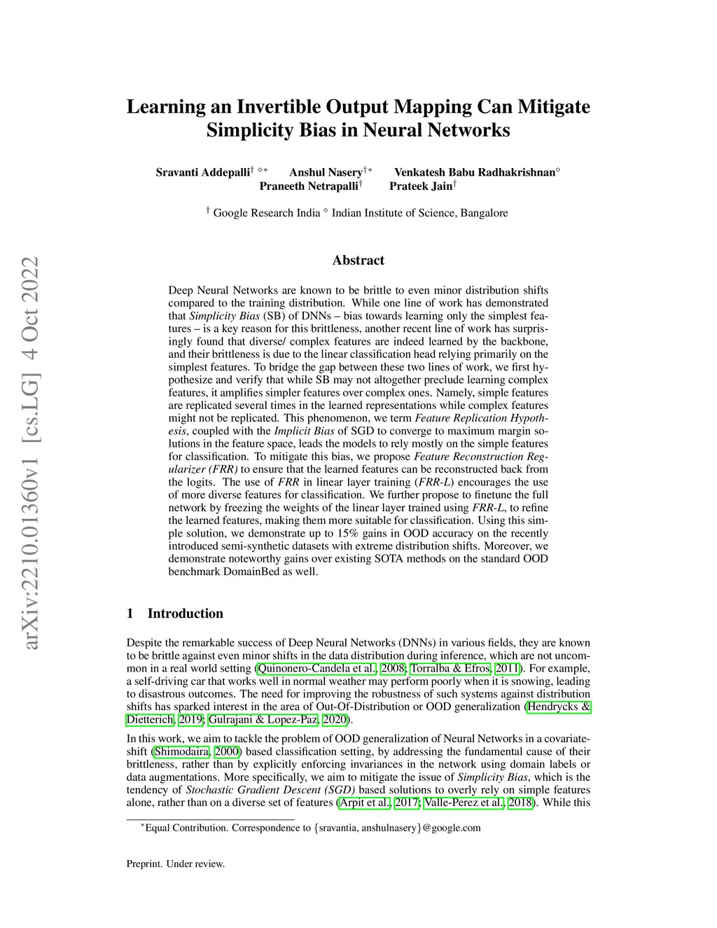 Learning an Invertible Output Mapping Can Mitigate Simplicity Bias in