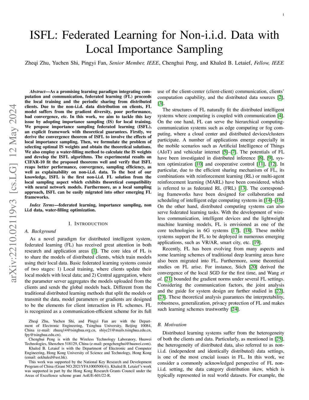 ISFL: Federated Learning for Non-i.i.d. Data with Local Importance