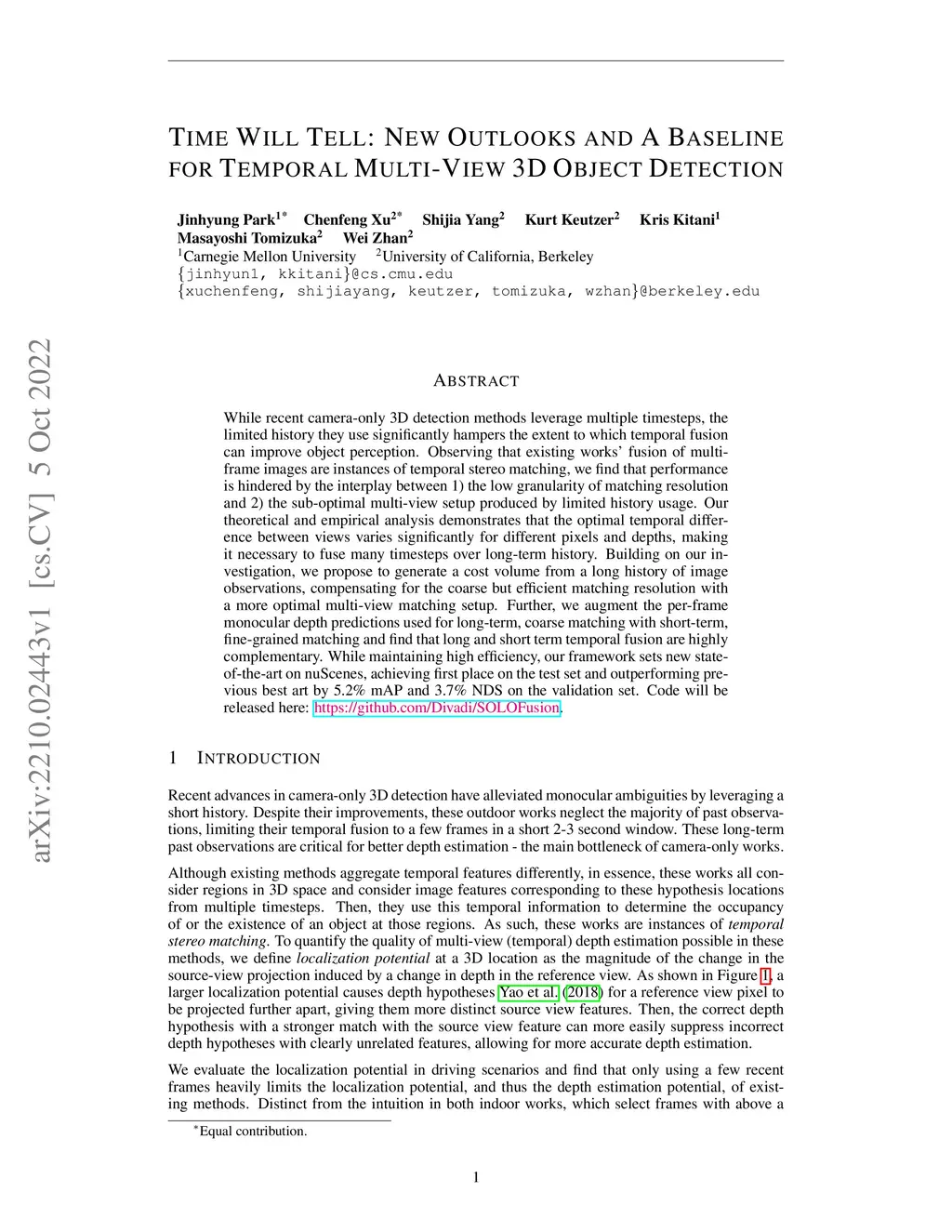 While recent camera-only 3D detection methods leverage multiple timesteps, the limited history they use significantly hampers the extent to which temporal fusion can improve object perception. Observing that existing works' fusion of multi-frame images are instances of temporal stereo matching, we find that performance is hindered by the interplay between 1) the low granularity of matching resolution and 2) the sub-optimal multi-view setup produced by limited history usage. Our theoretical and empirical analysis demonstrates that the optimal temporal difference between views varies significantly for different pixels and depths, making it necessary to fuse many timesteps over long-term history. Building on our investigation, we propose to generate a cost volume from a long history of image observations, compensating for the coarse but efficient matching resolution with a more optimal multi-view matching setup. Further, we augment the per-frame monocular depth predictions used for long-term, coarse matching with short-term, fine-grained matching and find that long and short term temporal fusion are highly complementary. While maintaining high efficiency, our framework sets new state-of-the-art on nuScenes, achieving first place on the test set and outperforming previous best art by 5.2% mAP and 3.7% NDS on the validation set. Code will be released