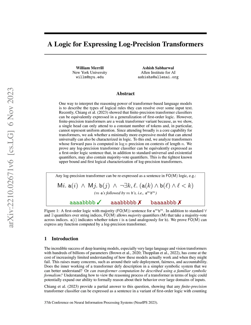A Logic for Expressing Log-Precision Transformers