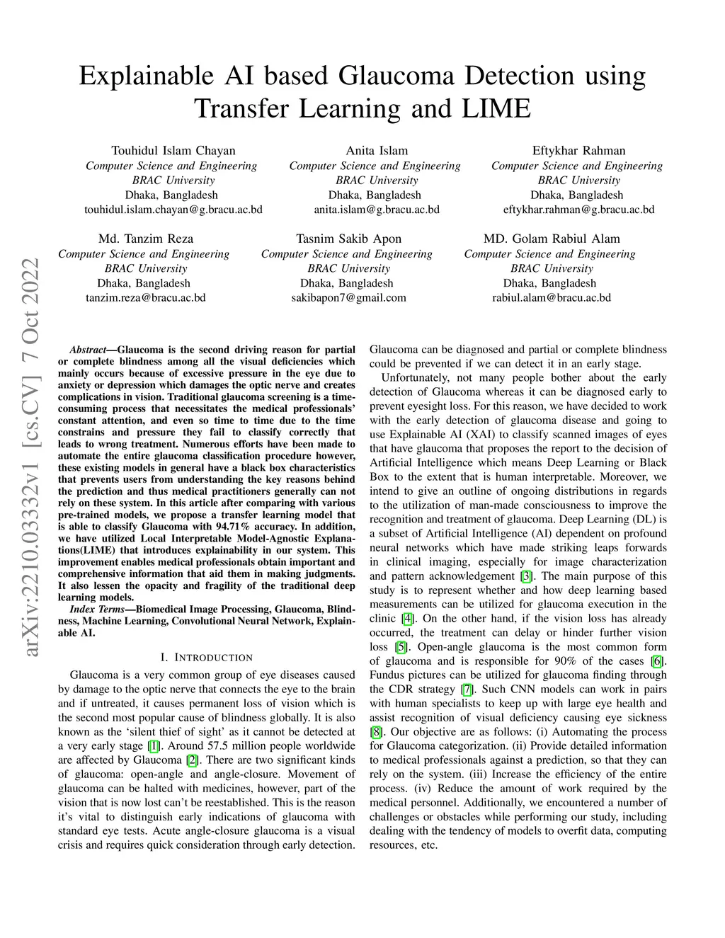 Explainable AI based Glaucoma Detection using Transfer Learning and LIME