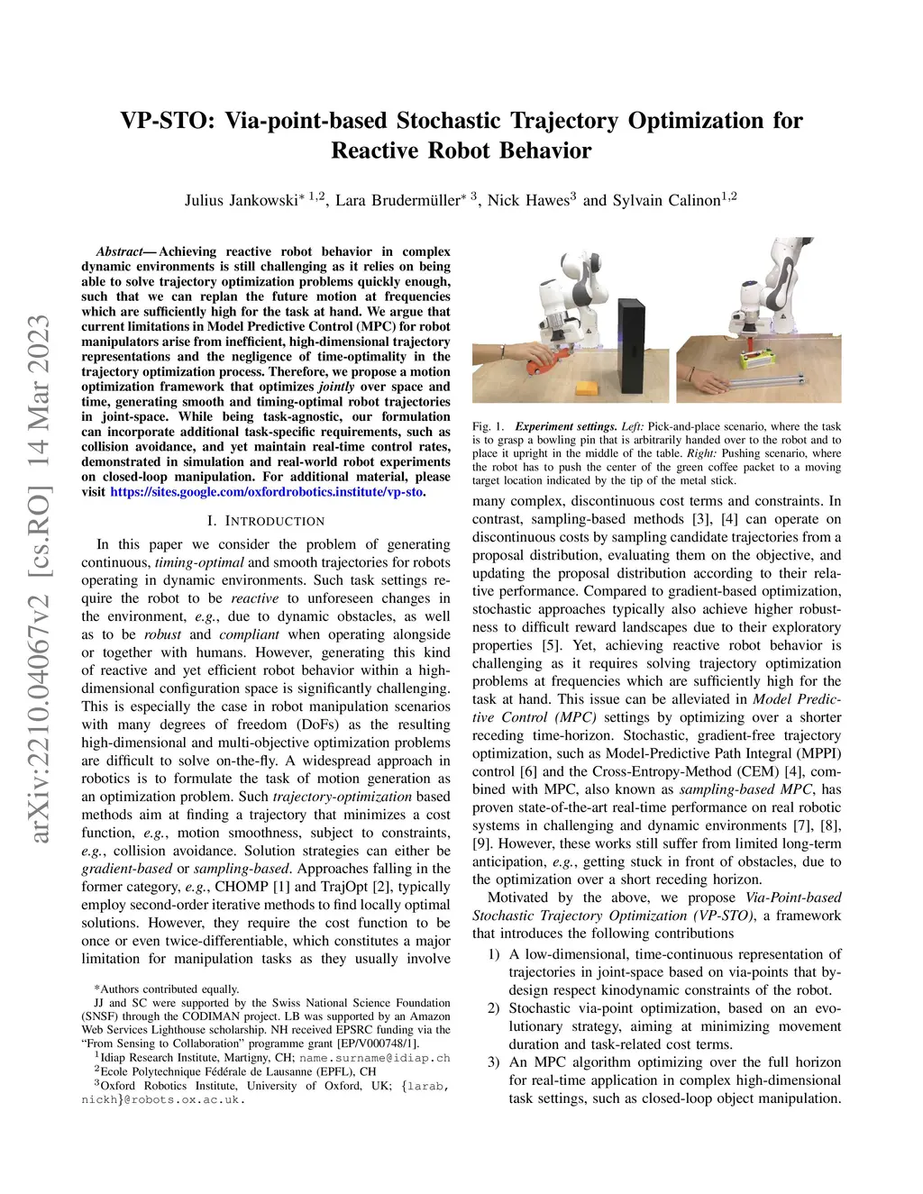 VP-STO: Via-point-based Stochastic Trajectory Optimization for Reactive