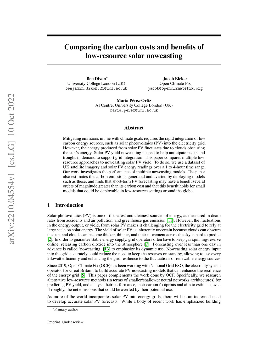 Comparing the carbon costs and benefits of low-resource solar nowcasting