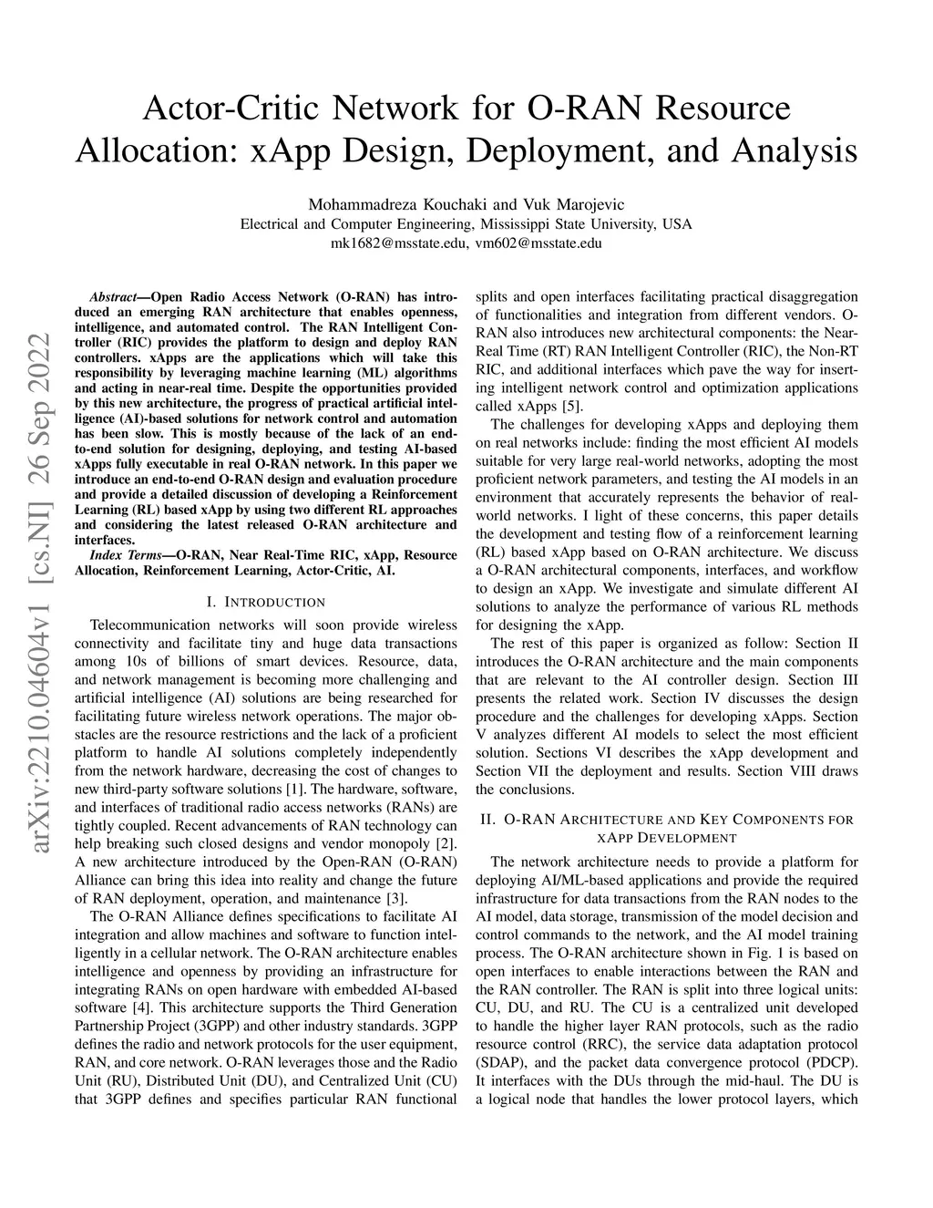 Actor-Critic Network for O-RAN Resource Allocation: xApp Design,