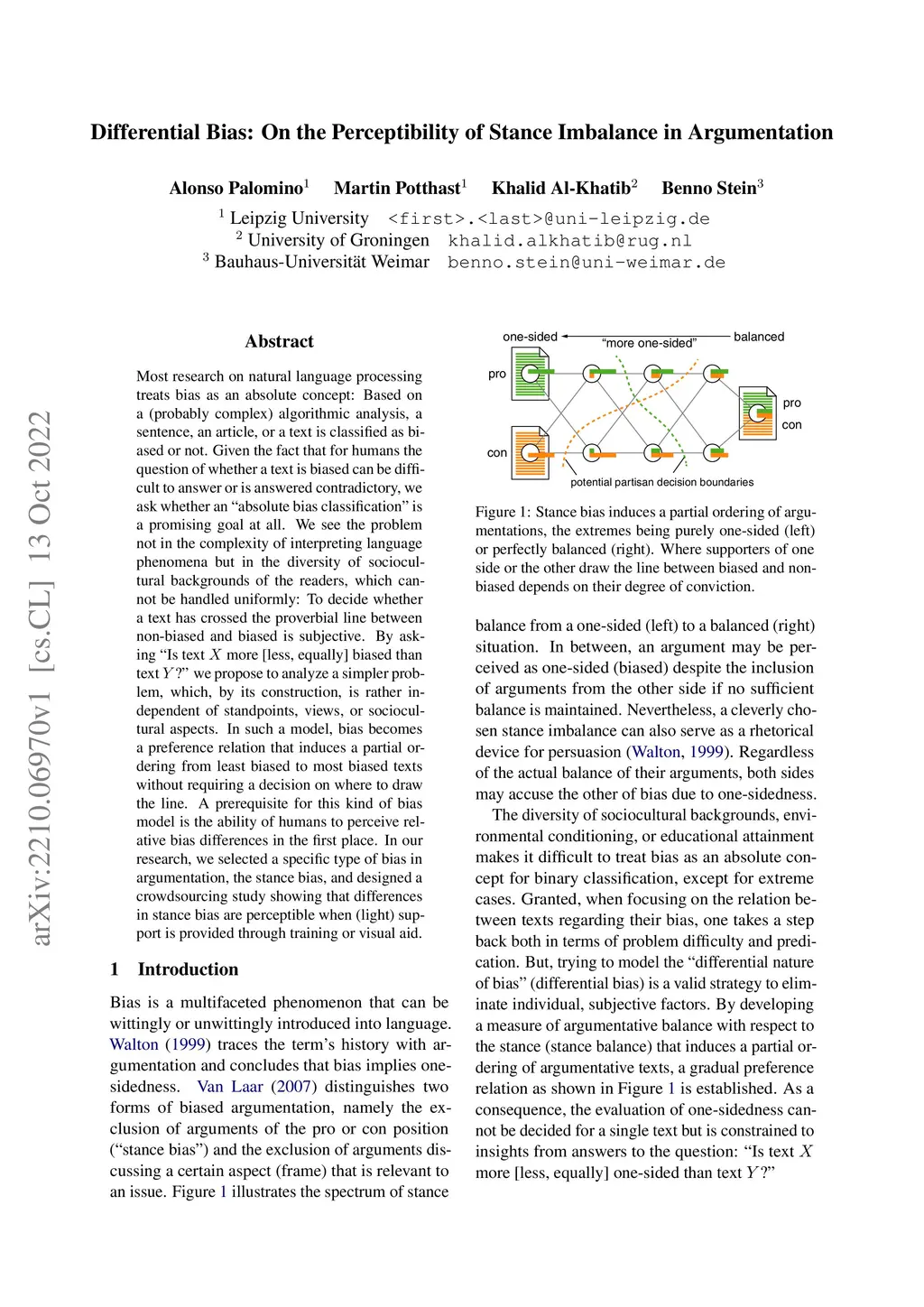 Differential Bias: On the Perceptibility of Stance Imbalance in