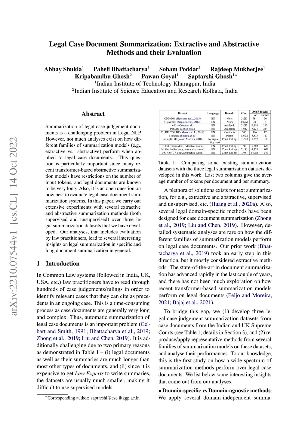 Legal Case Document Summarization: Extractive and Abstractive Methods