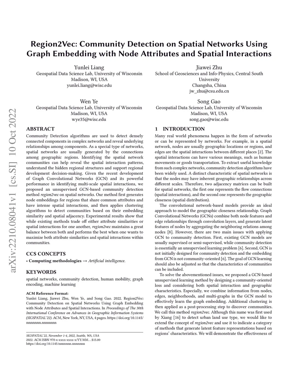 Region2Vec: Community Detection on Spatial Networks Using Graph