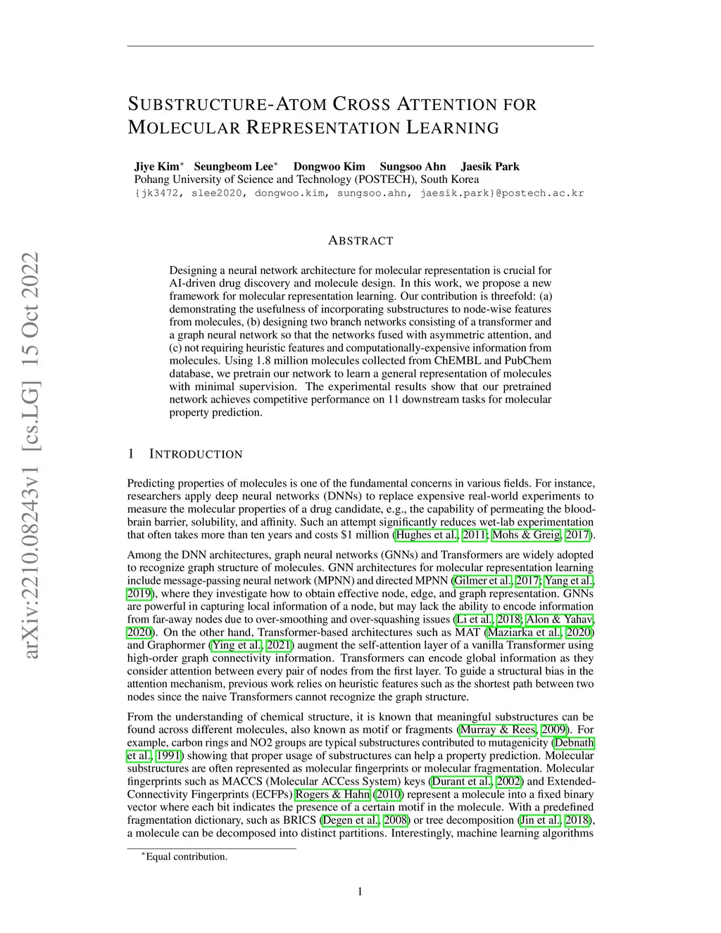 Substructure-Atom Cross Attention for Molecular Representation Learning