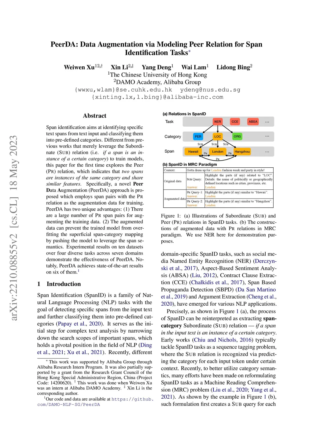 PeerDA: Data Augmentation via Modeling Peer Relation for Span
