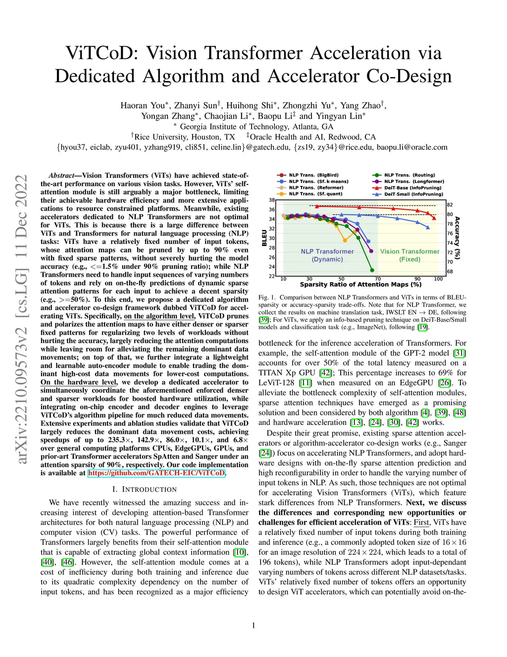 ViTCoD: Vision Transformer Acceleration via Dedicated Algorithm and Accelerator Co-Design